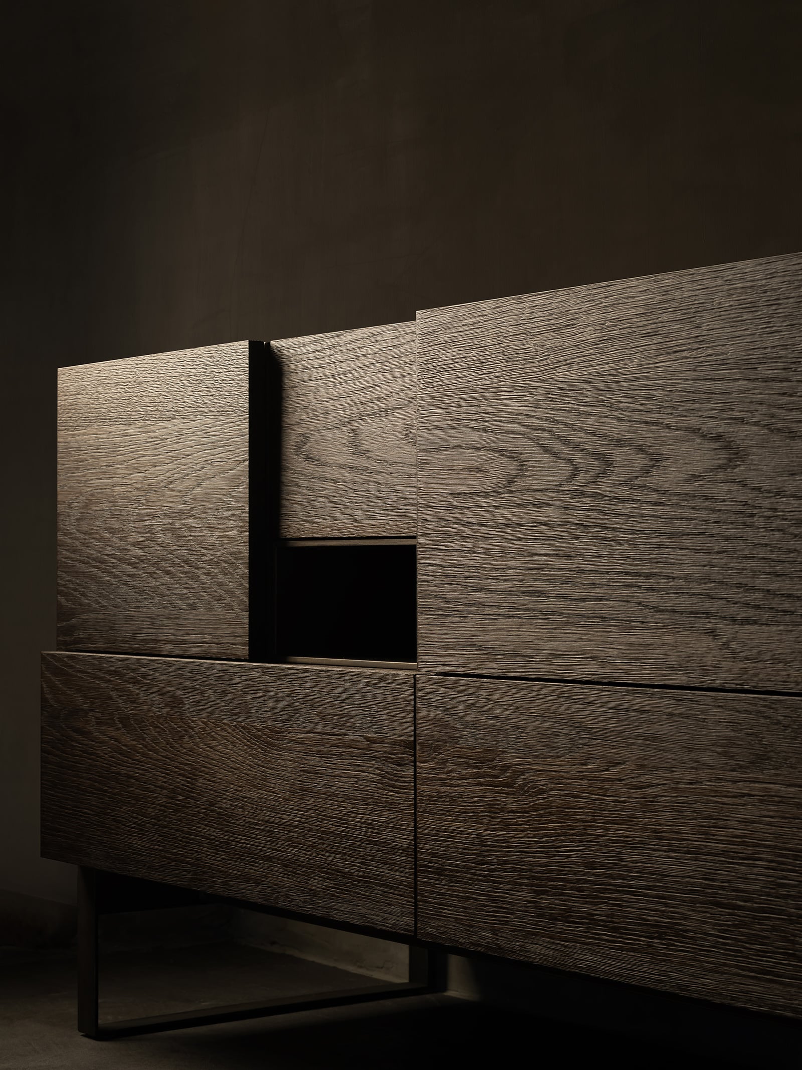 The Seikou sideboard is all about perspective. The subtle geometric form of this sideboard with drawers and doors accentuates the different depths. Every angle offers a surprising new view.